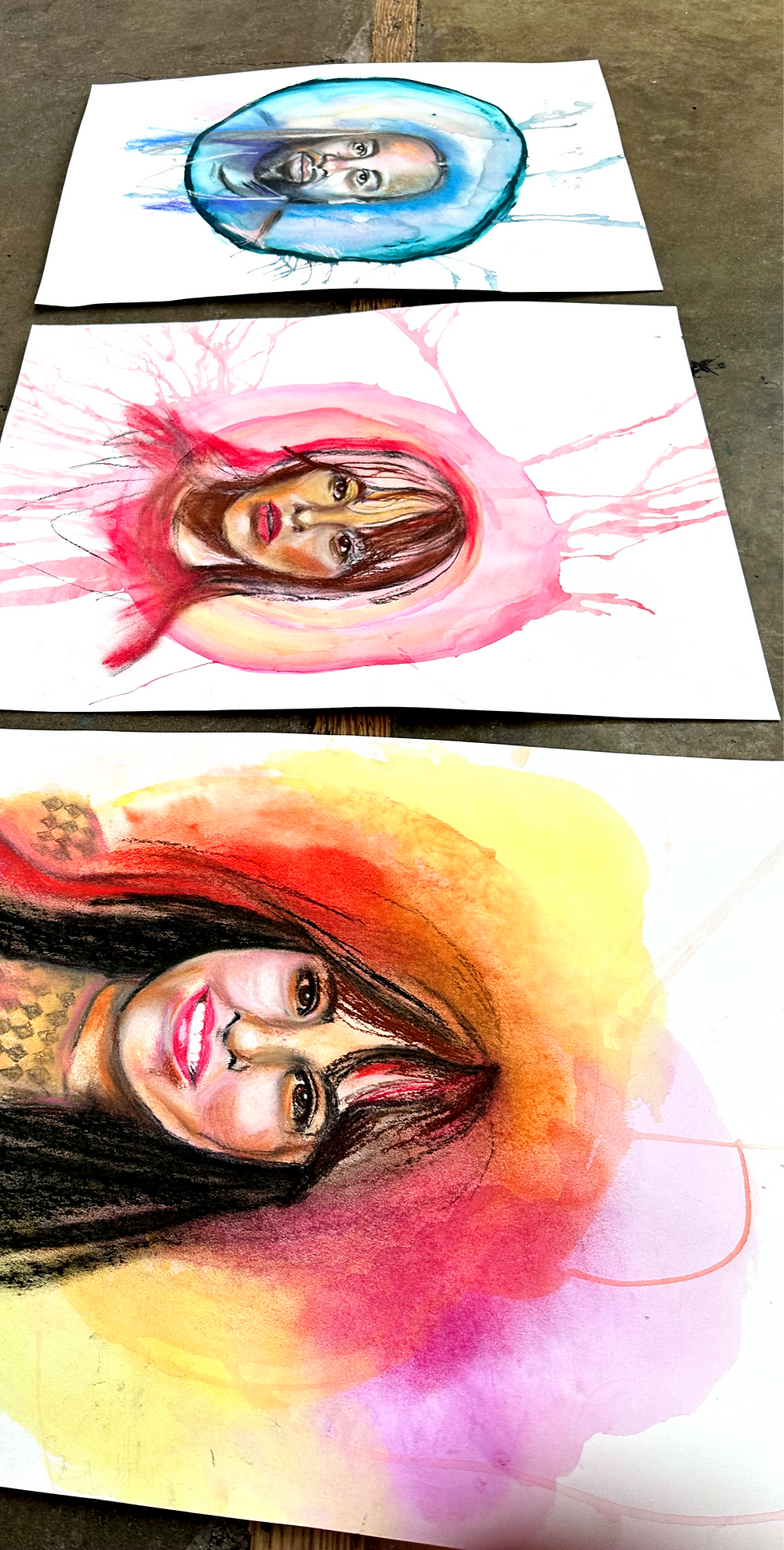 In mijn werk staat de energie en verandering van de mens centraal. Het laat mensen zien die vanuit hun kern en hart keuzes durven maken. Dat brengt spanning, kwetsbaarheid en hartstocht samen. Ik werk met acryl, inkt, pastelkrijt en houtskool.